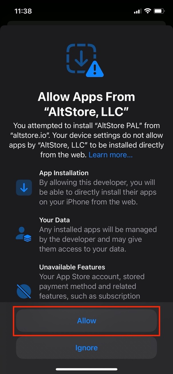 6. A new app will start downloading on your phone – AltStore. Wait for it to finish downloading.
