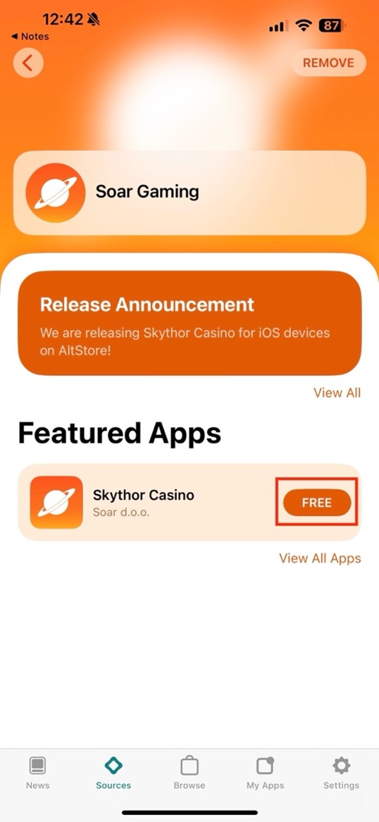 10. Click on the Free button to download the Skythor Casino app. After that, the app will be available on your home screen.